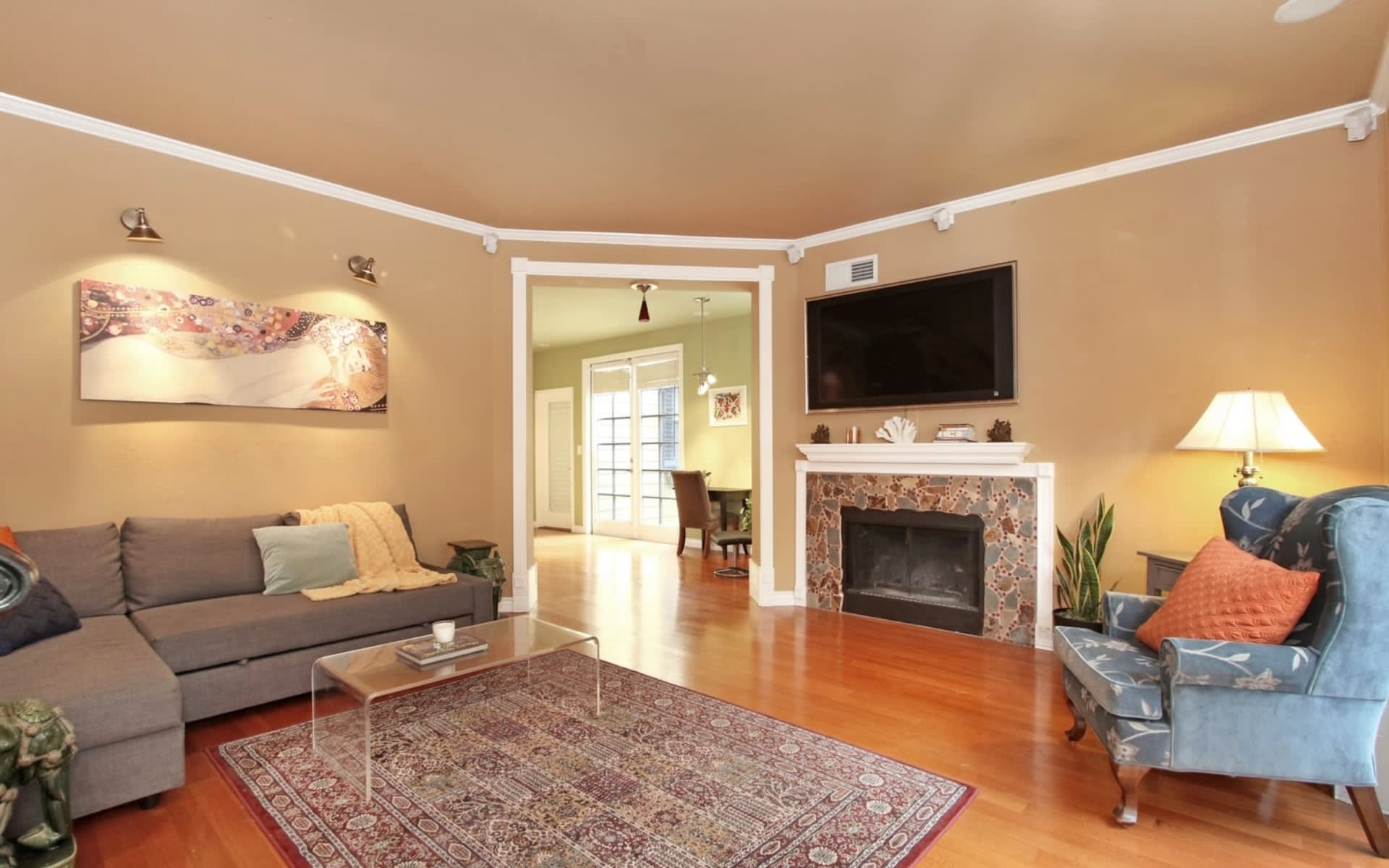 This stunning Eastside turnkey home is located just 12 blocks from the beach. The stylish exterior has wonderful curb appeal. Lush palm trees invite you into this polished 3 bedroom, 2.5 bathroom home. Custom features include crown molding, beautiful slate fireplace, modern light fixtures, and wood plantation shutters. There are 9 ft. high ceilings downstairs and gleaming hardwood floors throughout. The gourmet kitchen has granite countertops and stainless steel appliances. French doors lead to a charming, low maintenance backyard, perfect for al-fresco dining and enjoying the ocean air. The home is equipped with an alarm system and surround and wired for sound inside and out. Close to everything Long Beach has to offer, you will be just 9 blocks from the park and golf course, and fewer than 15 blocks from Belmont Shores hip 2nd Street area, full of restaurants and shopping.