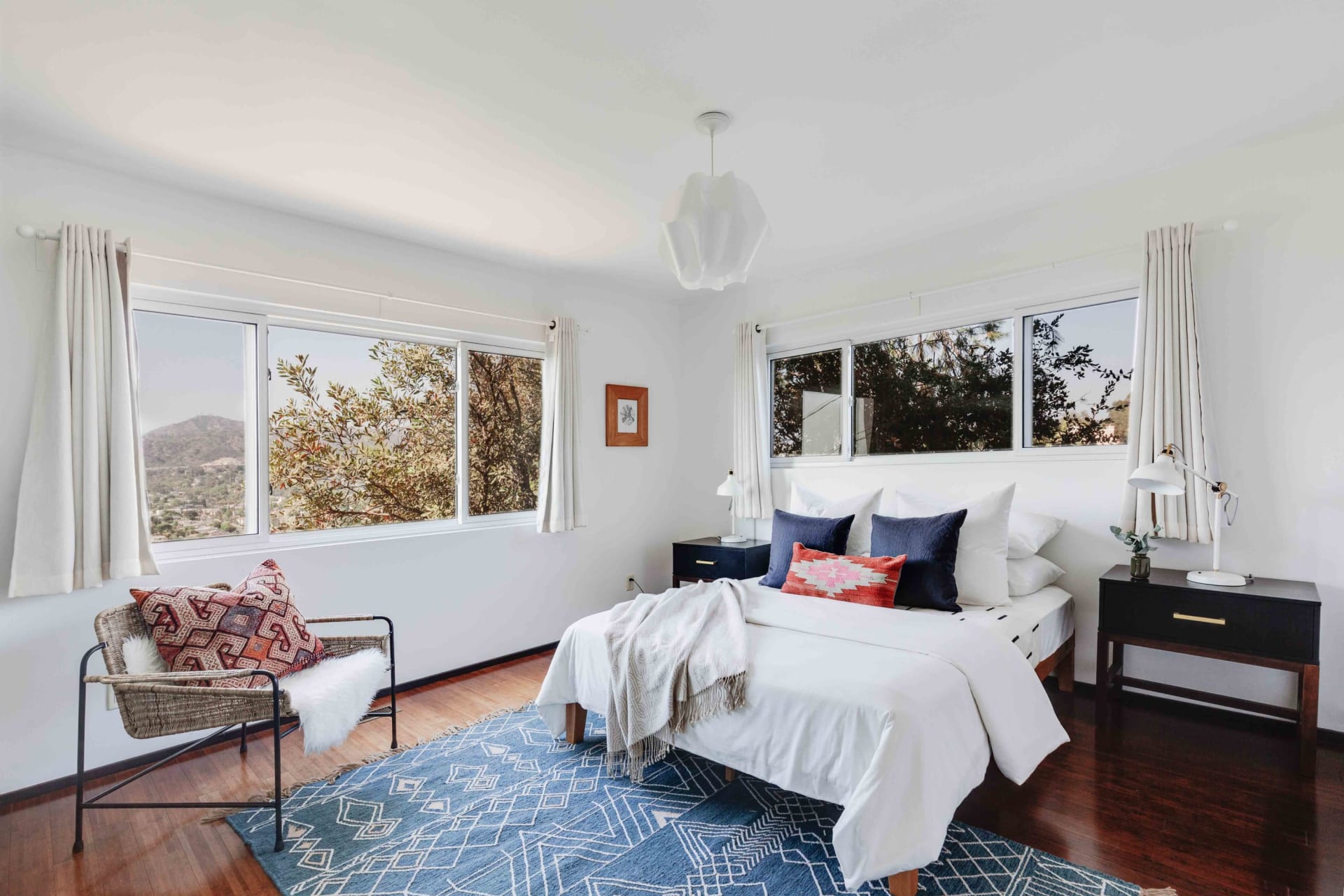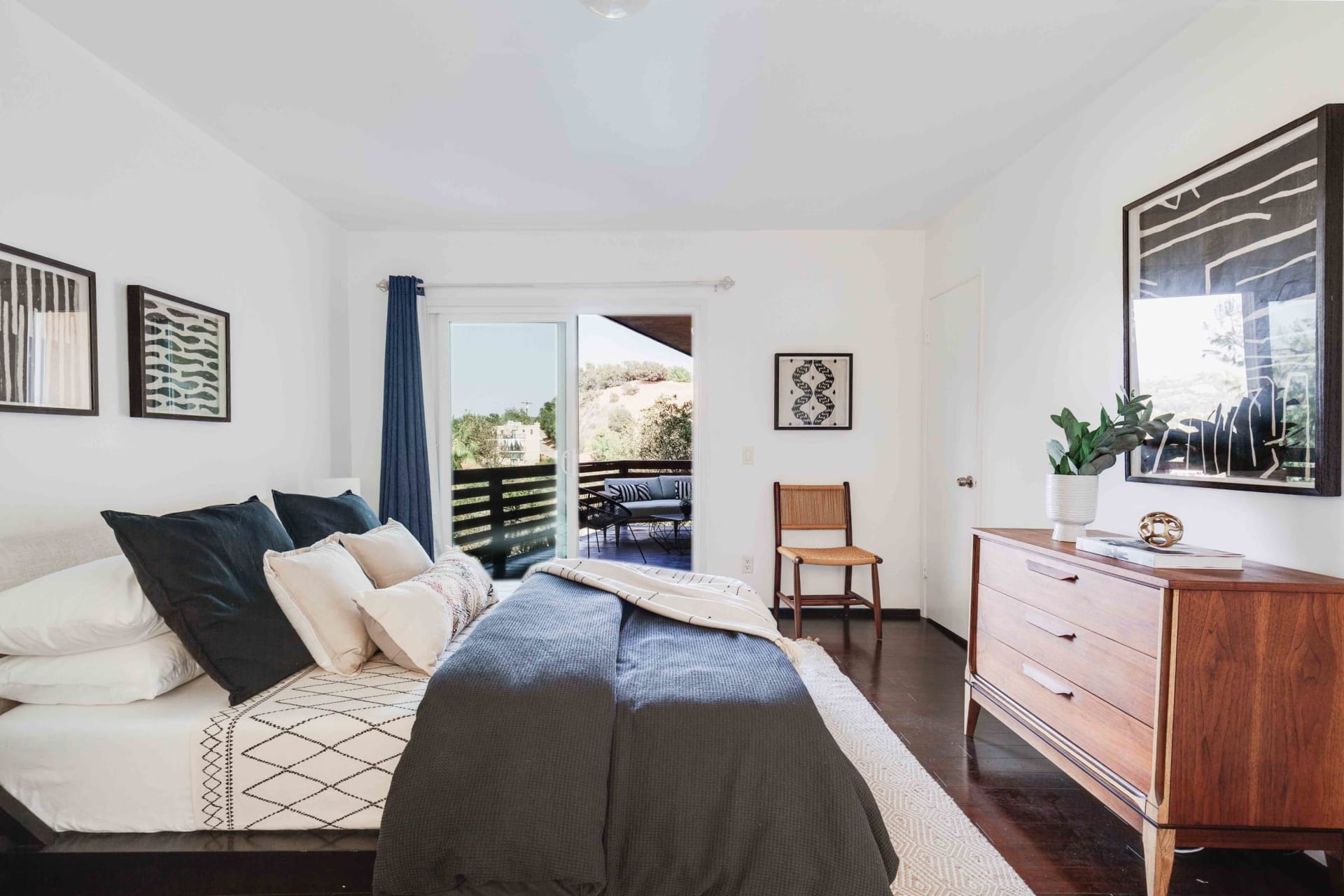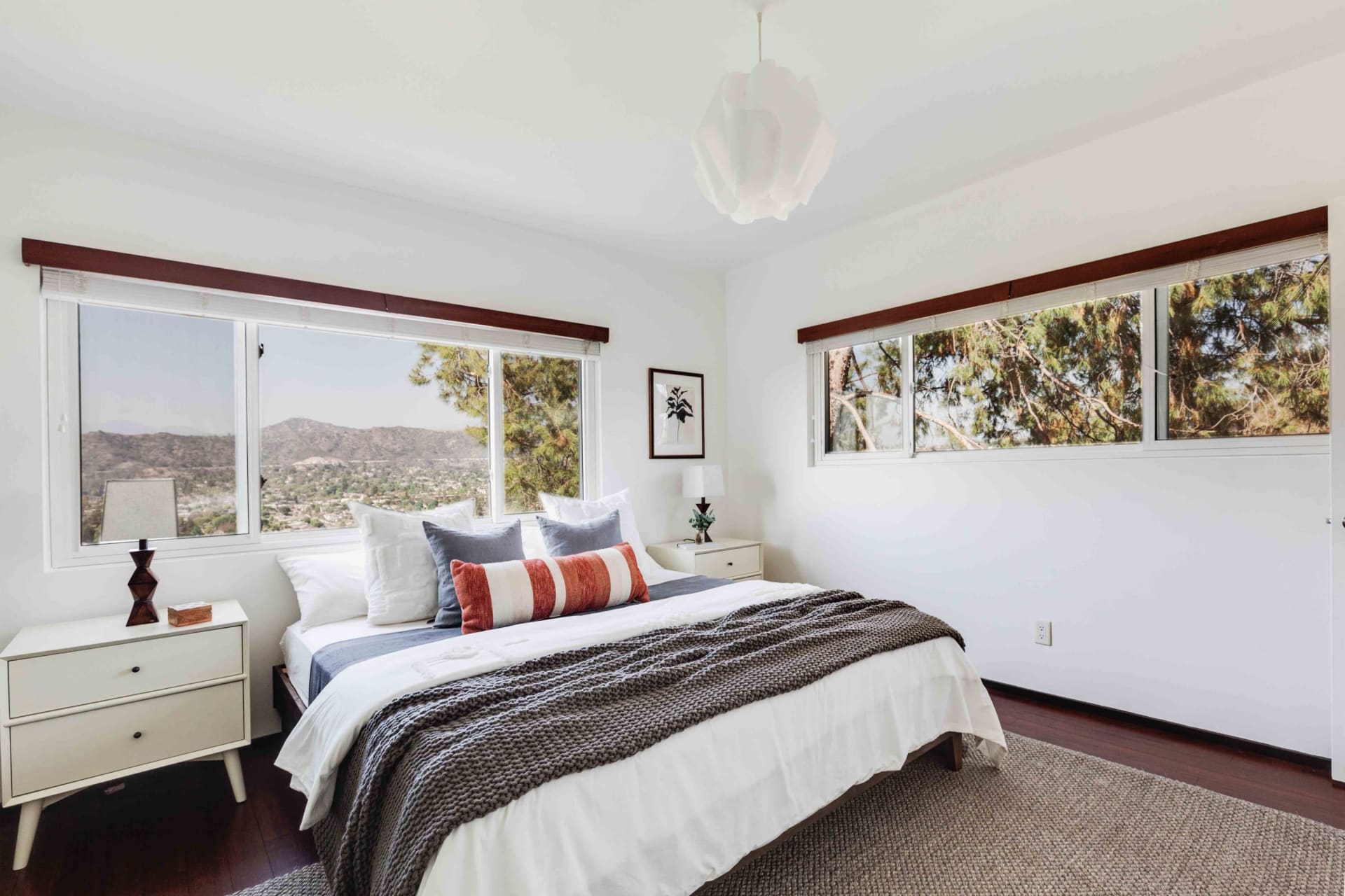 We are pleased to offer this exceptional mid-century gem, perched in the hills between Eagle Rock and Highland Park with sweeping views and character for days. The home features 3 bedrooms and 2 bathrooms plus an additional space, ideal for a home office, media room or gym (not included in posted SF). The living room features floor to ceiling sliding glass doors, perfectly framing a breathtaking view of the mountains, canyon and city lights below. On cool nights you will love the gorgeous stone fireplace in the living room, while warm so-cal days allow you to enjoy al fresco meals while taking in the view from your large deck. The top floor consists of a light filled living room, formal dining room, lovely kitchen, a large bedroom and full bathroom. Downstairs, you will find 2 additional bedrooms, one with a deck connecting to the bonus room, and a second full bath. You will be close enough to take advantage of the shops and restaurants on York and Colorado and then easily return home to your hilltop oasis. Recent upgrades include a new water heater, new water softener & reverse osmosis water system, new windows throughout and a new roof.Offered at $1,095,000